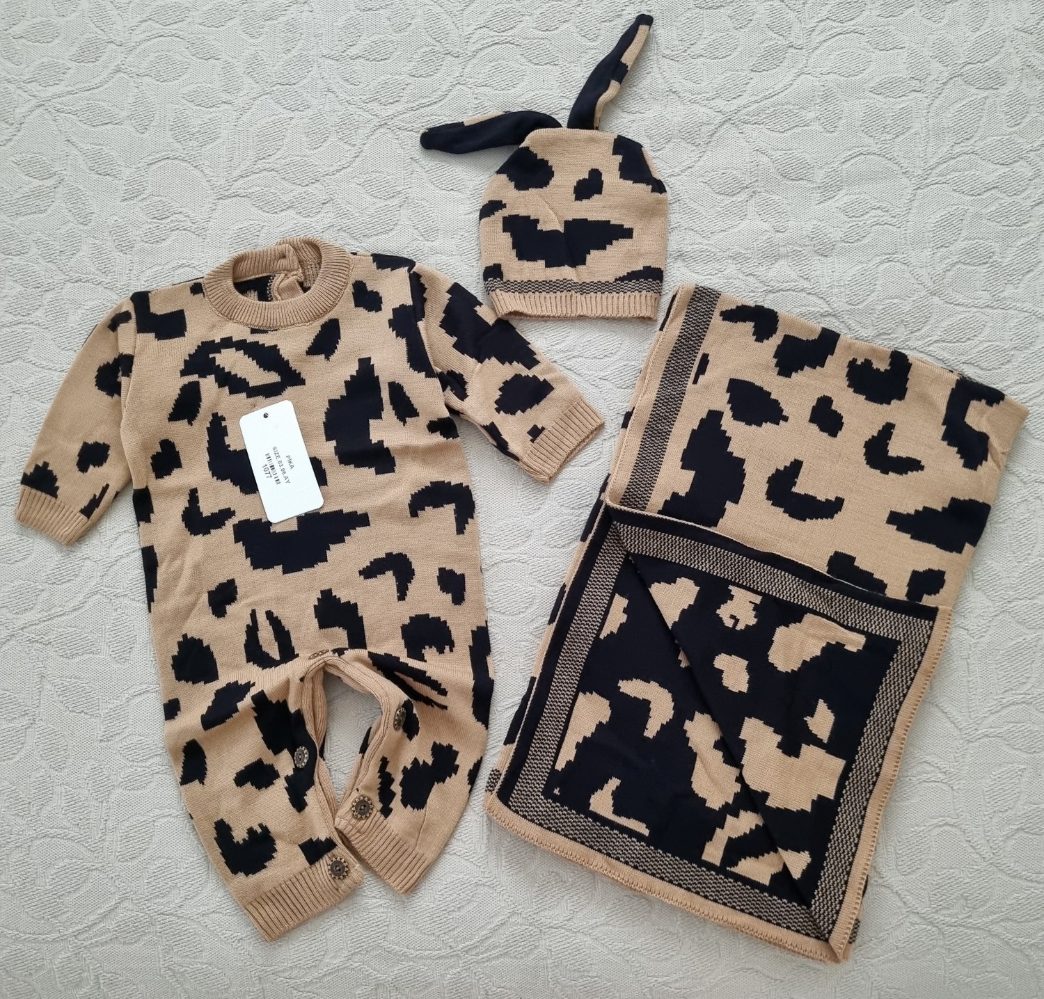 ست بافت نوزادی 3 تیکه طرح گاوی شتری مشکی ترک