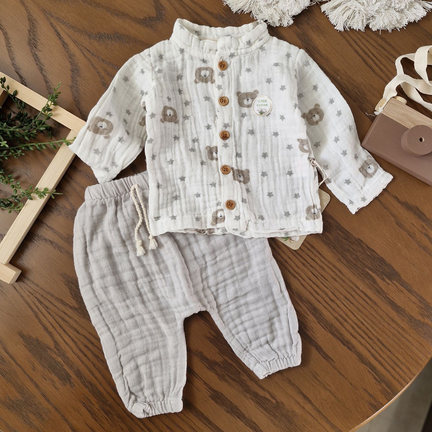ست بلوز و شلوار اسپرت طرح تدی تهیه شده از پارچه موسلین با کیفیت عالی