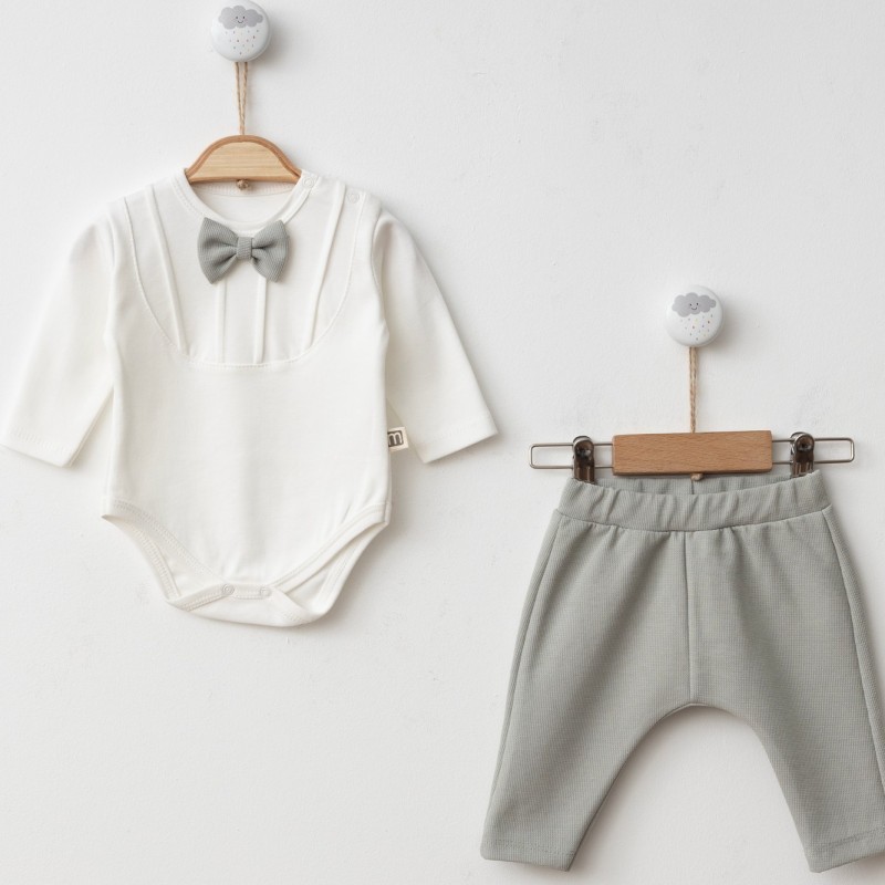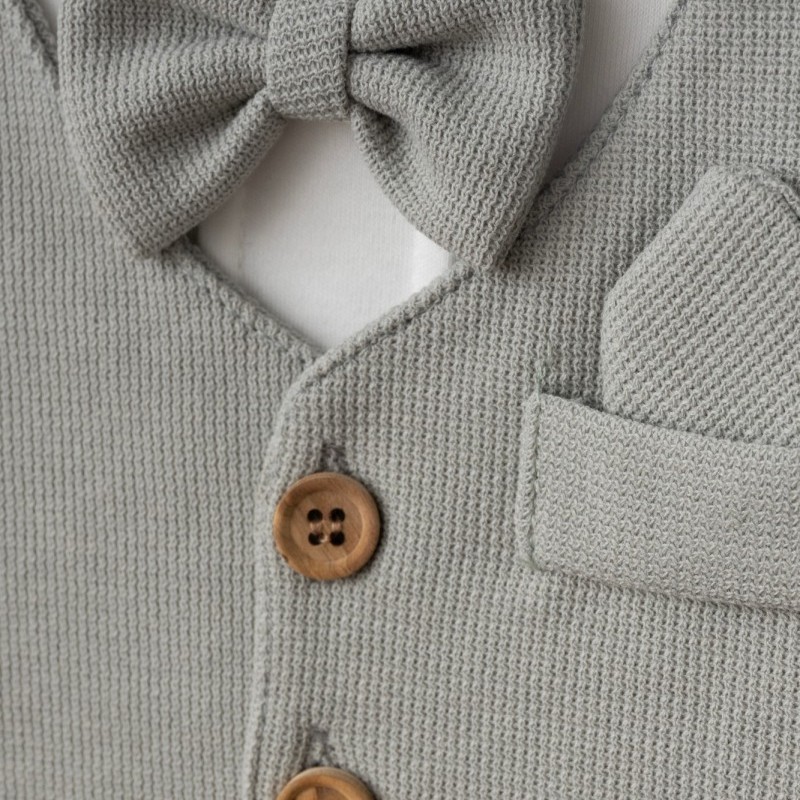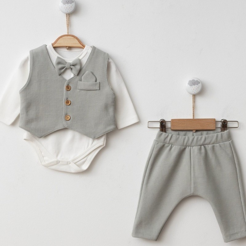 این ست 3 تیکه پسرانه جذاب شامل بادی، شلوار و جلیقه می باشد.